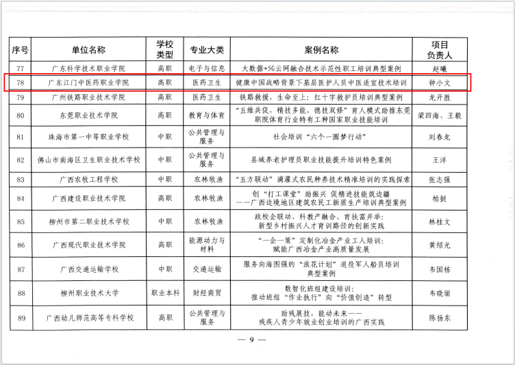 近日,教育部办公厅发布《关于推介职业院校面向社会开展职业技能培训典型案例与优质课程的通知》(教职成〔2025〕21号),我校《健康中国战略背景下基层医护人员中医适宜技术培训》成功入选职业院校面向社会开展职业技能培训典型案例。案例基于职业技能培训特点,聚焦基层医疗卫生机构需求,构建了“一体两翼三阶四步五环”培训模式,将在中国职业教育与成人教育网等平台宣传与推广。