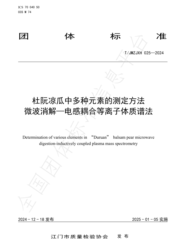 图7 T/IMZJXH 025-2024《杜阮凉瓜中多种元素的测定方法微波消解—电感耦合等离子体质谱法》