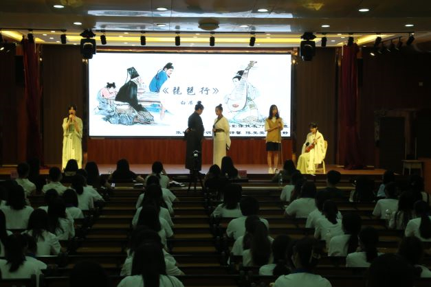 舞台上,每位同学都用最好的状态展现出自己对语言艺术的热爱,配以舞蹈、情景剧等形式增强舞台效果,为比赛锦上添花。