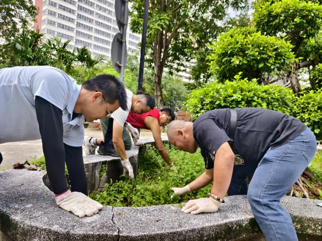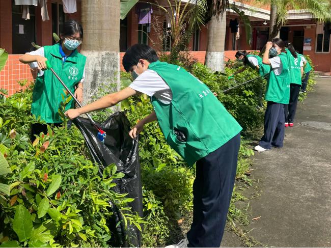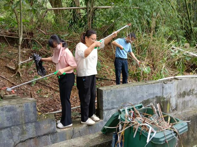 教职工带头清理卫生死角