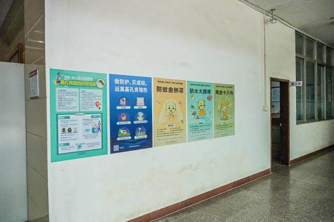 校园内通过张贴防蚊防疫海报、悬挂宣传横幅等多种形式,广泛普及防蚊灭蚊和健康防护知识,进一步增强师生的卫生意识和自我保护能力。