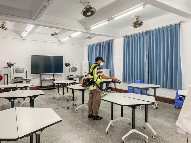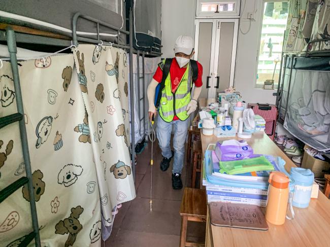 消杀队伍手持喷雾设备,每日对办公楼、教学楼、实训楼、宿舍楼、绿化带等进行全方位喷洒,形成常态化防护机制,切实为师生营造安全、卫生的学习生活环境。
