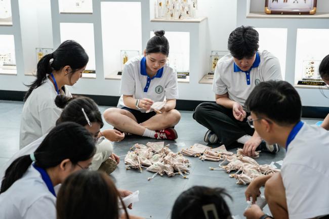 学校充分发挥中医药特色优势,选用艾叶、石菖蒲、丁香、藿香、白芷、薄荷等具有天然驱蚊功效的中药材,研磨成粉,制成中药防蚊香囊,以“中医智慧”助力疫情防控。