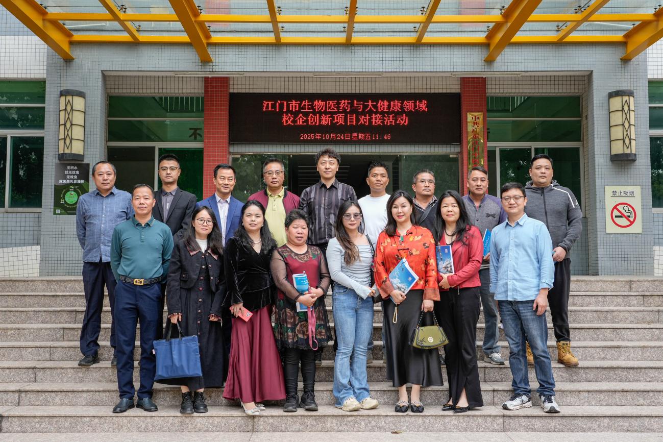 2025年10月24日上午,在江门市工业和信息化局指导和江门市企业联合会的组织下,15家企业负责人走进我校,共同参与“江门市生物医药与大健康领域校企创新项目对接活动”。江门市企业联合会执行秘书长梁泳仪,副秘书长、金融部部长吴景泉,副秘书长、交流部部长梅洪伟,以及学校党委委员、副校长谭晓玉等领导出席活动。