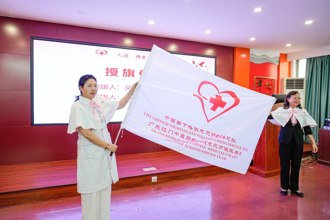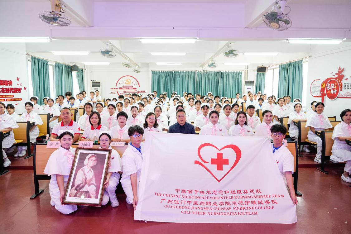 为传承“人道、博爱、奉献”的红十字精神,深化护理志愿服务内涵,10月30日下午,广东江门中医药职业学院顺利召开中国南丁格尔志愿护理服务总队广东江门中医药职业学院志愿护理服务队成立大会。这标志着江门地区首支高校南丁格尔志愿护理服务队正式成立,也意味着南丁格尔精神将在侨乡大地薪火相传、落地生根。