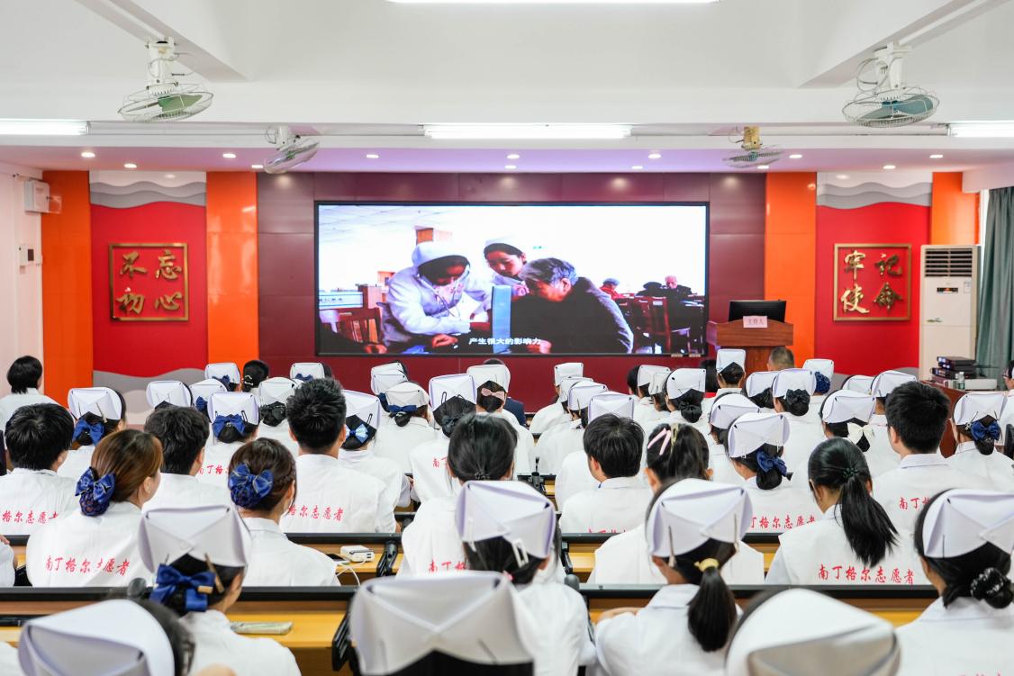 陈敏仪副会长在讲话中指出,红十字精神与南丁格尔精神一脉相承,希望学校志愿护理服务队持续依托学院的中医药专业特色,进一步深化专业服务与志愿实践的融合,打造“学院+志愿”服务品牌,不断提升服务品质与社会影响力,为江门建设“志愿之城”“大爱之城”贡献专业力量。