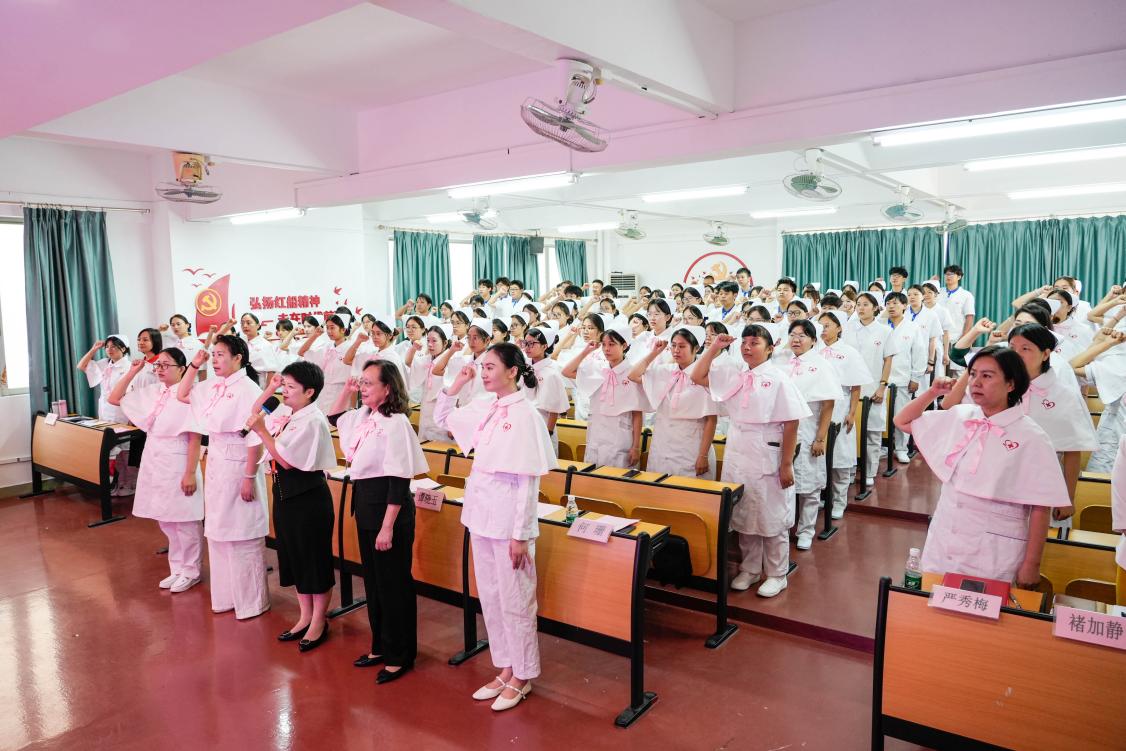 中国南丁格尔志愿护理服务总队副秘书长吴惠平,第49届南丁格尔奖获奖者邢少云,中国国际科技促进会医药卫生教学与研究工作委员会执行主任王文海、秘书长褚加静,江门市红十字会副会长陈敏仪、综合业务部部长刘浩,学校党委委员、副校长谭晓玉,教务部部长区绮云,护理学院领导及师生代表等100多人参加成立大会。