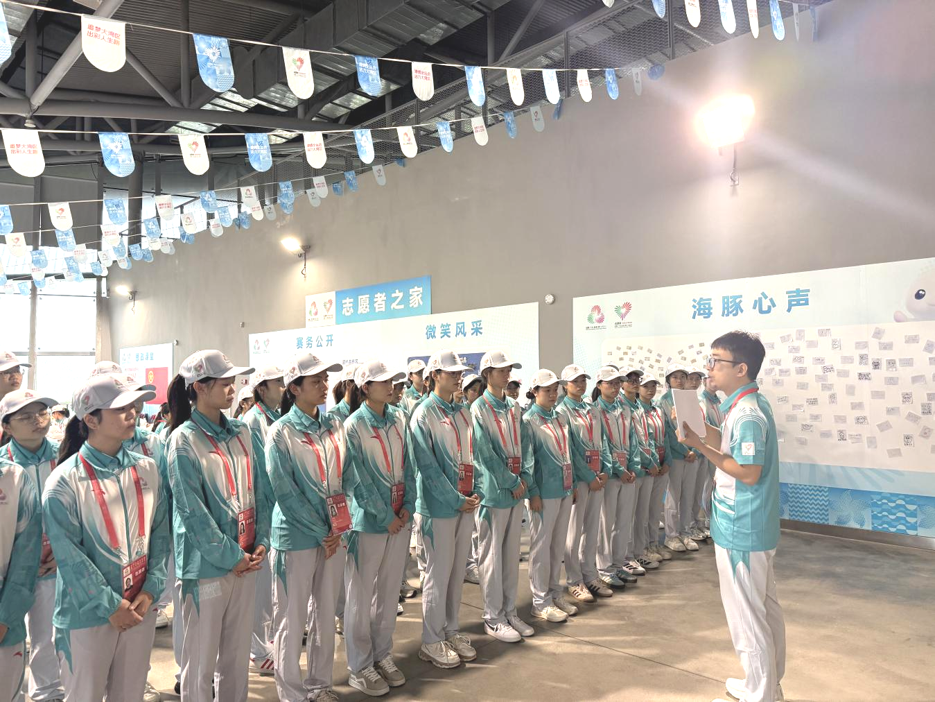 晨光微露,朝气蓬勃的“小海豚”们已整装待发。277名“小海豚”身着统一的蔚蓝服装,宛如一股清新的溪流,汇入江门体育中心的海洋。他们的眼神清澈而坚定,跃动着对奉献青春的期待。