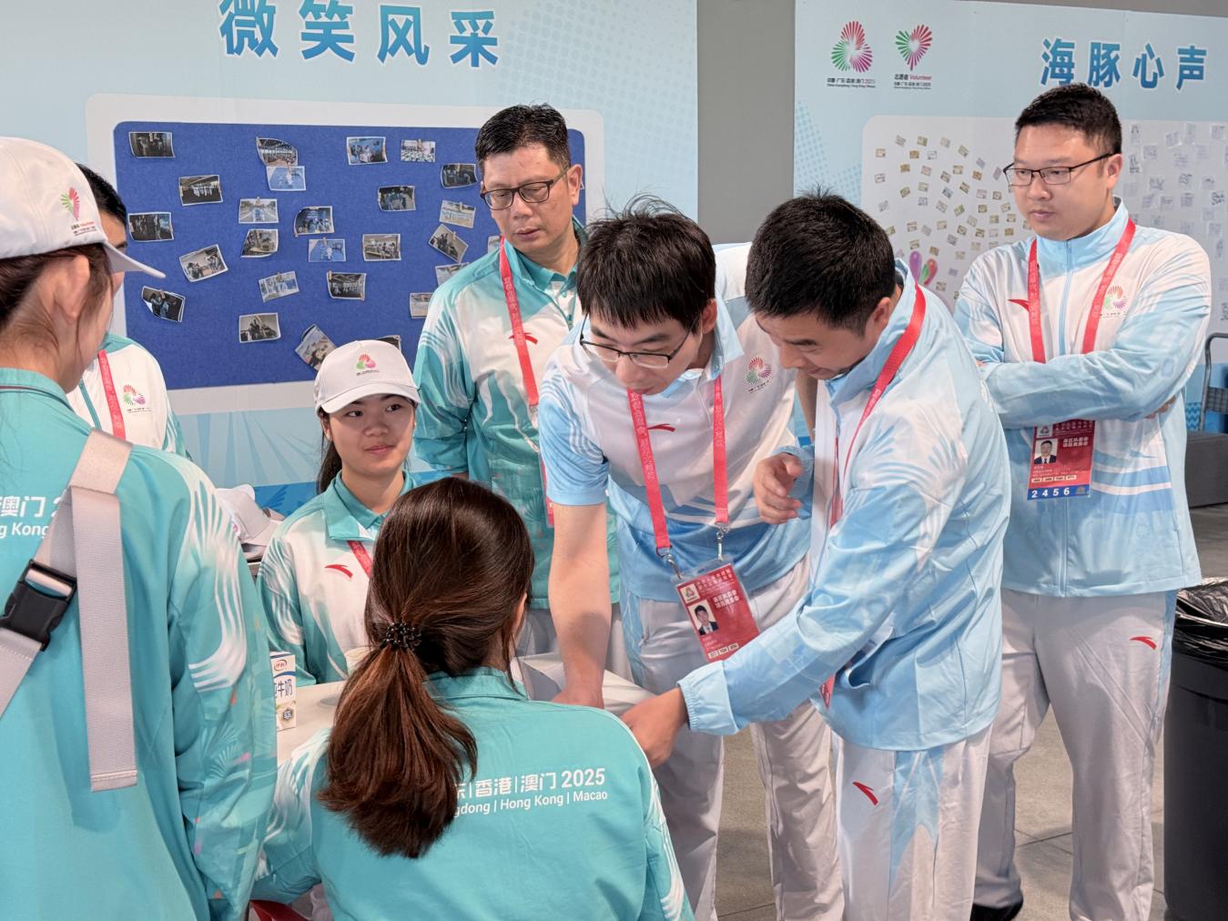 随着花样游泳赛事全面展开,江医职的“小海豚”们将继续以饱满的热情、专业的服务和昂扬的姿态,为后续山地自行车赛、残特奥会足球赛等赛事提供全方位、高质量的支持,让志愿精神在十五运赛场熠熠生辉,为“激情全运会、活力大湾区”增添一抹亮丽的青春色彩!