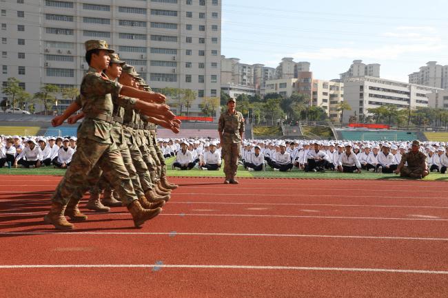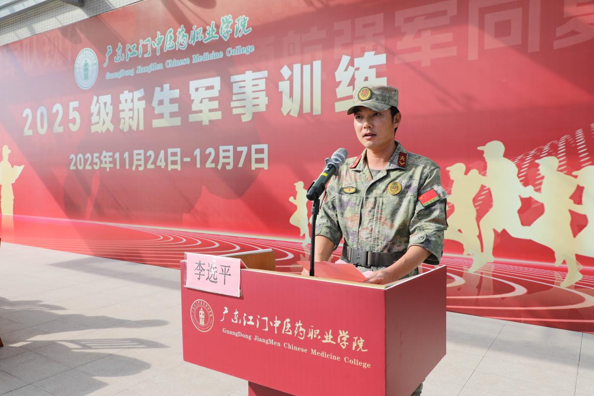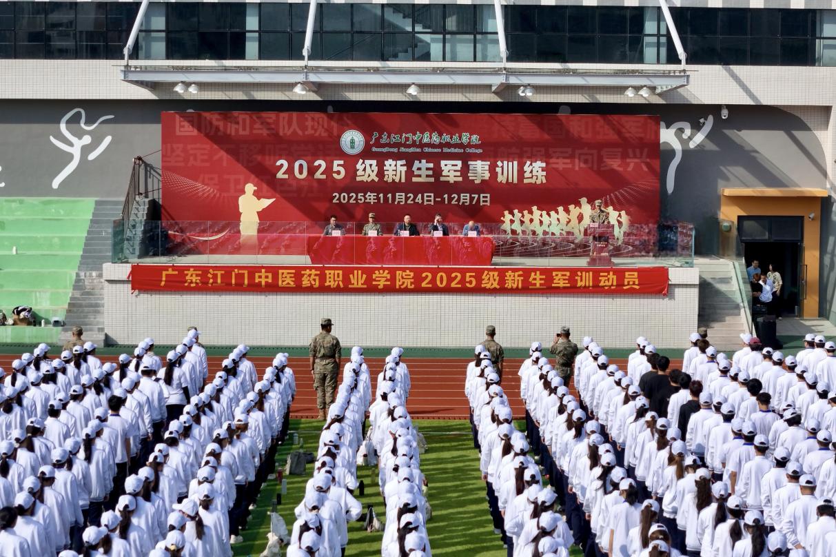 11月24日,我校2025级新生军训正式拉开序幕。蓬江区人民武装部军训教官队长周云,校党委书记蒋业洲,校党委副书记、校长程文海,副校长欧阳能,党委委员、党政办主任常陆林,2025级班主任及全体新生参与新生军训开营仪式。