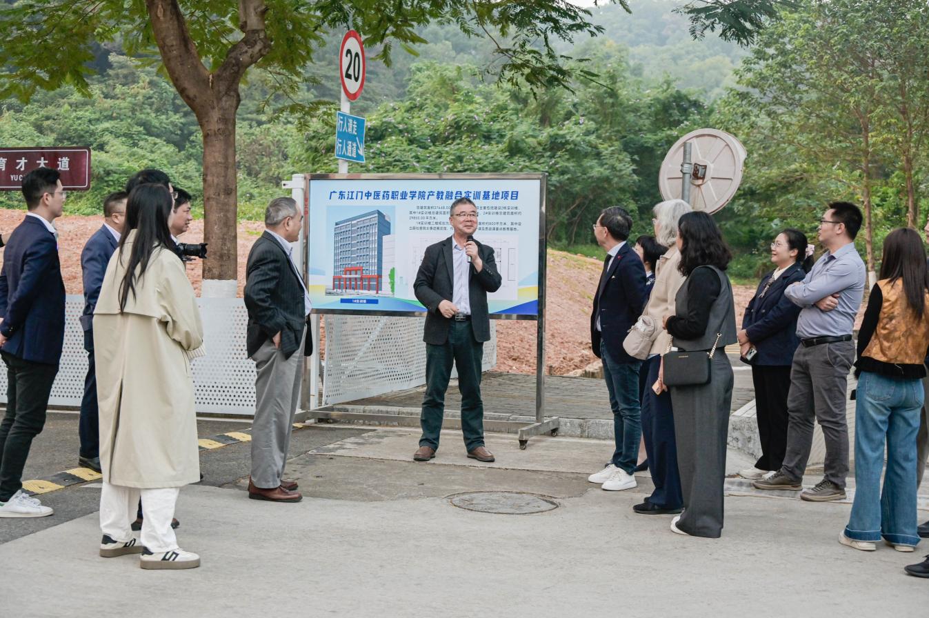 宣讲会结束后,与会嘉宾实地了解广东江门中医药职业学院产教融合实训基地项目。程文海校长详细介绍了项目建设规划、功能布局及未来在中医药人才培养、技术创新与社会服务中的战略定位,其中二楼规划为生命科学馆,建筑面积约800平方米,设立薛社普院士事迹展览馆,作为新生入学第一课及思政课重点教育基地。专家们对项目的前瞻性设计与产教深度融合理念给予高度评价,并就课程对接、科研协同、成果转化等方面提出了宝贵意见和建议。