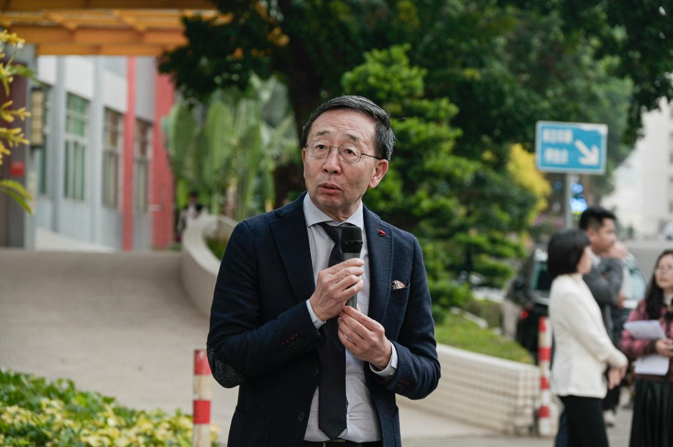 活动伊始,广东江门中医药职业学院党委书记蒋业洲致辞。他深情回顾了薛社普院士从新会走向世界、将毕生精力奉献给祖国生命科学事业的崇高历程。蒋业洲指出,薛社普院士毅然归国、潜心科研、教书育人的一生,生动诠释了胸怀祖国、服务人民、勇攀高峰、甘为人梯的科学家精神,体现了医者仁心与科学匠心的深度融合,为新时代树立起一座精神丰碑。他强调,弘扬薛社普院士的科学家精神,不仅是对历史的致敬,更是对未来的赋能。他号召全体师生以薛院士为榜样,做求真的笃行者、奉献的践行者、创新的开拓者,让科学精神的火炬照亮前行之路,为健康中国建设和中医药事业振兴贡献青春与智慧。