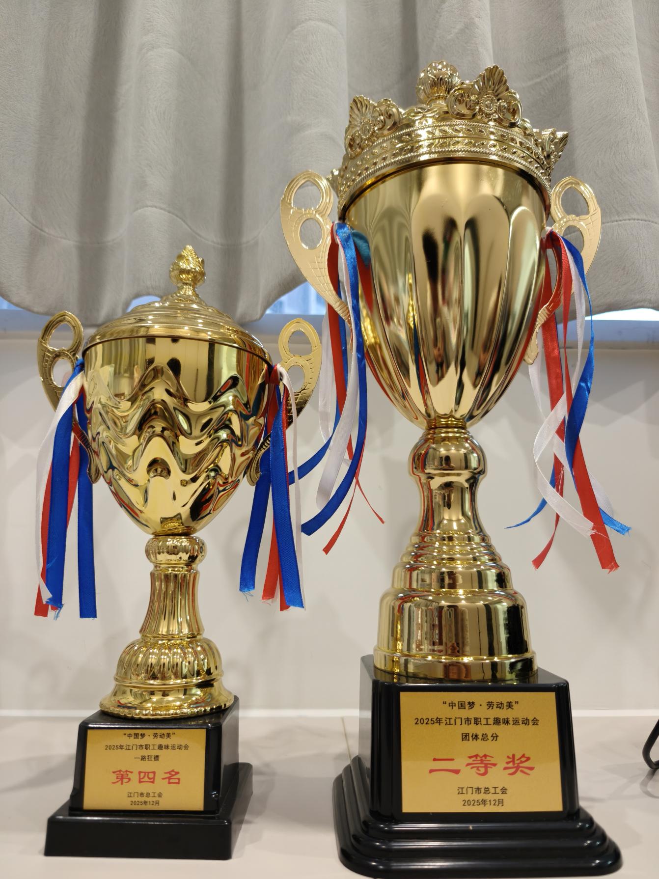 12月19日上午,由江门市总工会主办的“中国梦・劳动美”2025年江门市职工趣味运动会圆满落幕,我校教职工代表队凭借默契协作与奋勇拼搏,斩获团体总分二等奖,在特色项目“一路狂飙”中跻身第四名,充分展现了学校教职工昂扬向上的精神风貌与强劲的团队凝聚力。