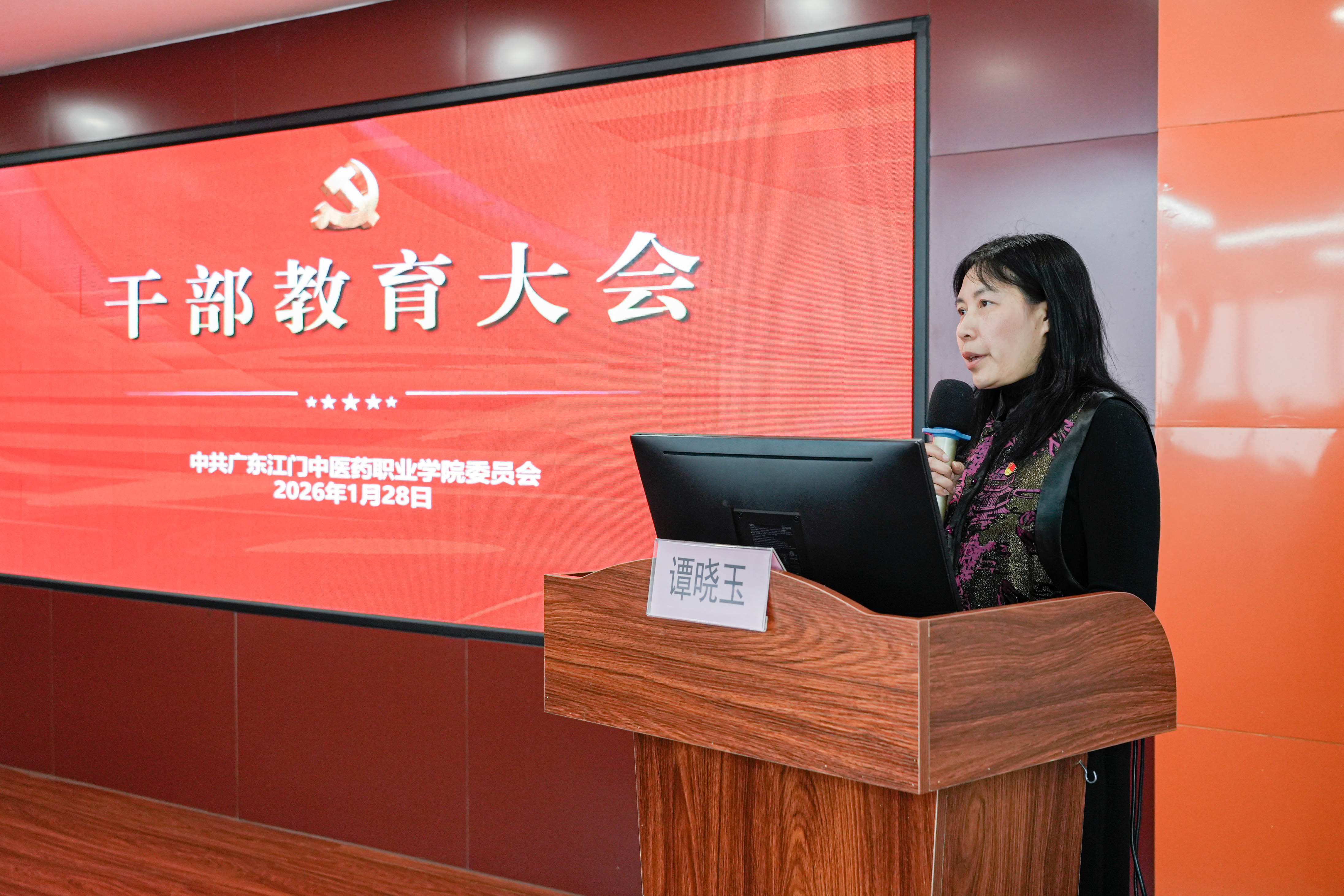 在全校干部教育大会上,分管人事和教学工作的党委委员、副校长谭晓玉同志围绕师德师风建设、干部队伍培养开展专题培训,强调要以“德、能、勤、绩、廉”五个维度,全面加强干部教师教育管理,将"为党育人,为国育才"的责任践行在课堂的一言一语、工作日常的一举一动中。