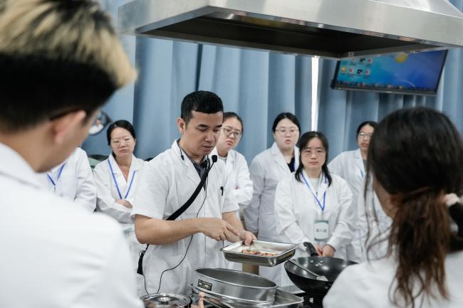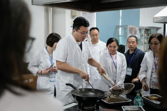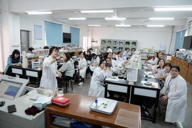 中药鉴定实训室内,“观形察色、辨质求真” 成为研学关键词,学子们在专业教师的指导下,学习中药材鉴定方法,通过眼观、手摸、鼻闻等方式辨别药材真伪优劣,将千年鉴定智慧化作实操本领;中药炮制实训室中,“炮制虽繁必不敢省人工” 的匠艺精髓尽显,学子们近距离学习炮制技艺,在火候调控、工序把控的讲解中,感受中医药炮制工艺的精妙与严谨,体会中医药人精益求精的匠心。