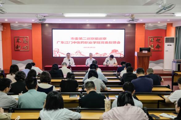 4月3日,十四届江门市委第八轮巡察第二组巡察广东江门中医药职业学院党委反馈会在学校党校会议室召开。市委第二巡察组组长陈长青反馈巡察情况,市政府副秘书长汪世雷出席会议并讲话,校党委书记蒋业洲主持会议并作表态发言。