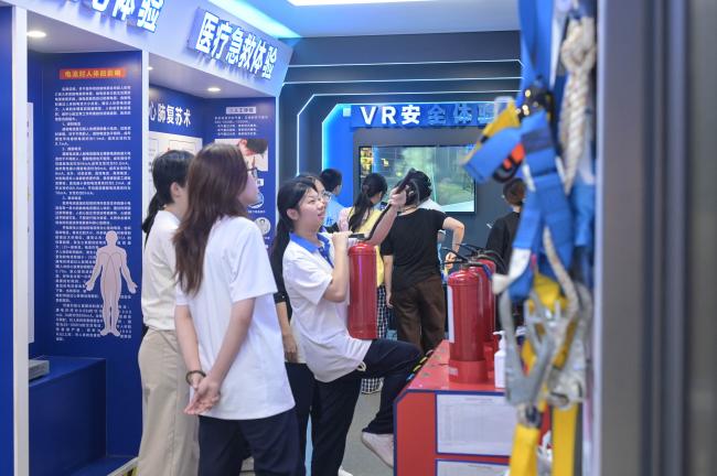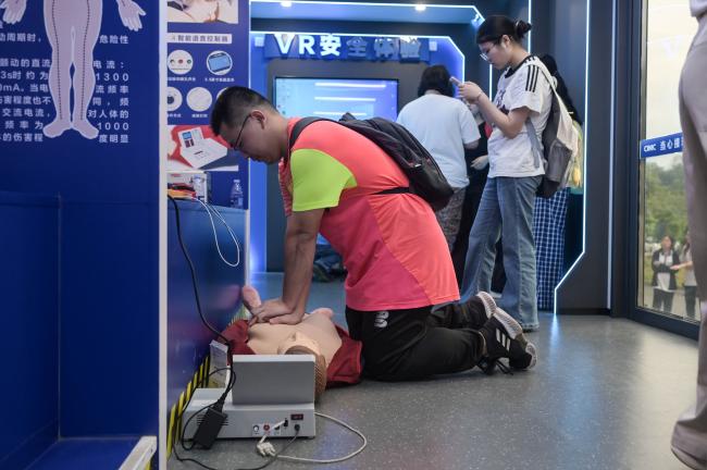 “以前觉得安全课有点枯燥,戴上VR设备后,真真切切感受到违规操作的可怕后果。”一位刚体验完的同学心有余悸地说道。在VR安全体验区,同学们仿佛置身于真实的作业现场,亲身体验叉车行驶失控、高空坠落等惊险瞬间;在安全帽撞击体验区,突如其来的撞击感让大家瞬间领悟到佩戴防护装备的重要性;医疗急救体验区则手把手教会大家心肺复苏、包扎止血等应急技能。